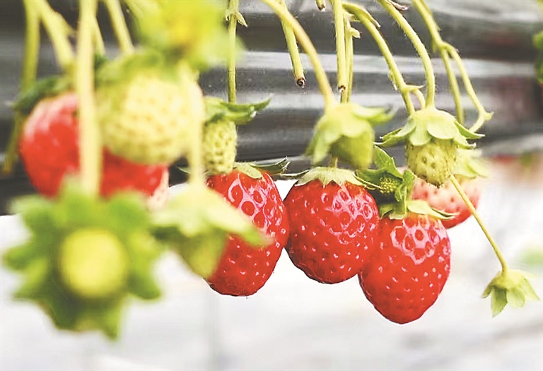 在阜宁镇建新村大岭下屯还有7栋特别的温室大棚,大棚内一排排田埂整齐划一,翠绿的叶子中间缀满了水果黄瓜和草莓柿子,果实、绿叶、黄花交相辉映。为合理规划大棚空间,温室大棚采用“错茬种植、一棚多产”的发展模式,大棚每年可种植两到三茬蔬菜,草莓、柿子、豆角、辣椒、菠菜、黄瓜等果蔬轮番种植,提高大棚的利用率,实现一棚多用、一地多季、一年多收。之后将综合考量市场需求,采取“种植+采摘+休闲”的模式融合发展,以打造绿色、有机蔬果为目标,不断提升蔬果品质和知名度。