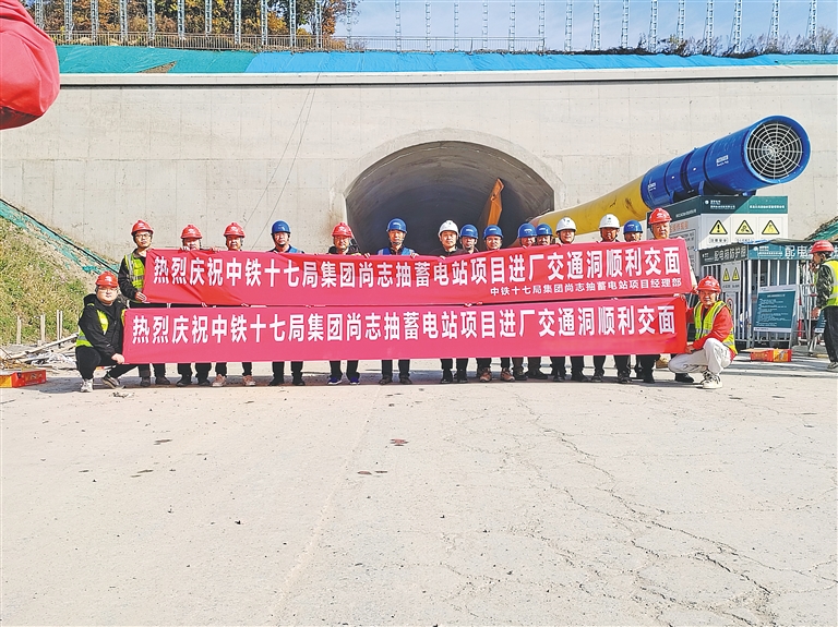 为国庆献礼,为企业争光。近日,由中铁十七局集团承建的黑龙江尚志抽水蓄能电站项目进厂交通洞顺利贯通,交通洞全长1427.12米,该洞的贯通为主体厂房施工建设提供了便利,为电站实现预期发电目标打下了坚实的基础,发扬了“铁军”精神,实现了既定的节点目标。