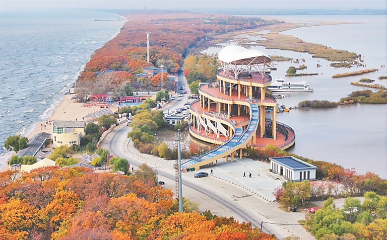 金秋十月,鸡西市兴凯湖湖岗树洞旅游公路进入最佳观赏期,外地游客纷纷到湖畔打卡赏秋。这条长81公里的道路两侧,杏树、椴树、槲栎、柞树、枫树等树木的叶子开始变色,呈现黄、粉、紫、红等不同颜色。这条路最吸引人的地方是路两侧的大树树冠交织在一起,形成一条长长的彩色“树洞”。阳光斜射,树洞公路流光溢彩、斑斓耀眼。本报记者 张澍摄