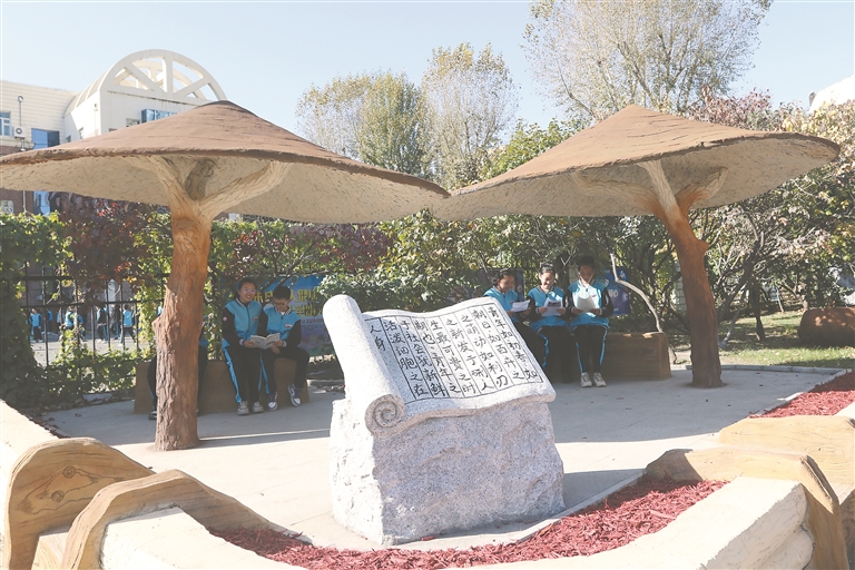 此次创意设计灵感来源于“香坊真香”之“书香门第”,在原有设施基础上进行修复与创意设计,通过新增书形景观小品、修缮种植池、篆刻《少年中国说》、打造互动性文化彩绘墙,营造文化传承的浓厚氛围,并在种植池边增加座椅,让学生和居民在休闲交流中感受浓郁的书香文化。同时对校门两侧亭廊微更新,使之更加贴近居民的实际需求,推动街区环境旧貌换新颜。