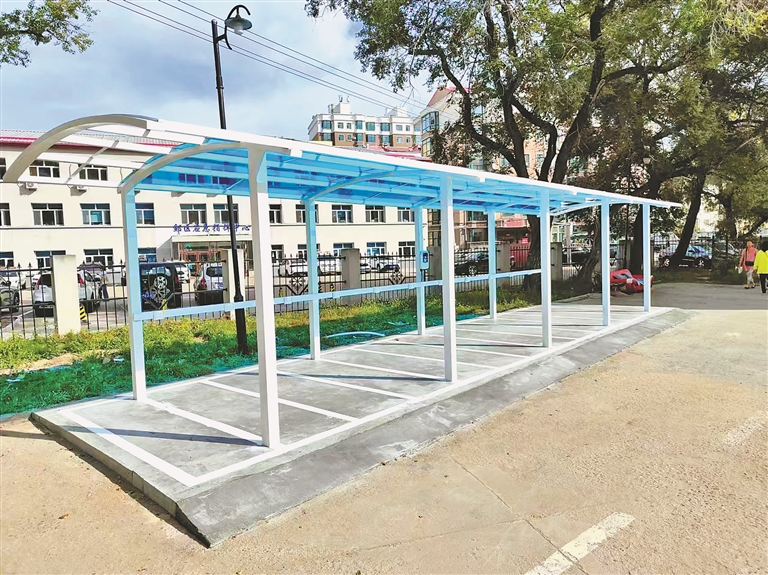 走进小区院里,两个车棚都涂上了白漆,看着十分明亮整洁,充电桩投入使用后可同时供12辆电动车充电,充电桩附近的地面划出了停车位,同时还贴心地设置了缓坡方便车辆移动。