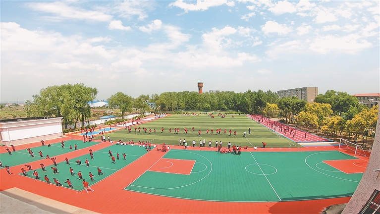宽敞明亮的五层教学楼内,传来朗朗读书声;铺着运动悬浮地板的篮球、排球、打击球运动场上,欢声笑语此起彼伏;笼式五人制足球场上,足球小将们为梦想努力训练……哈尔滨市香坊区成高子镇中心校内,一派欣欣向荣。