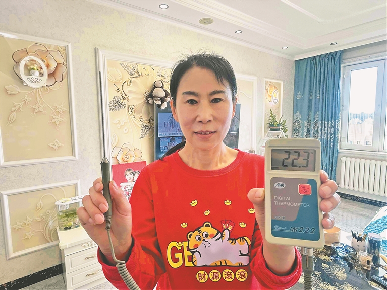 20日下午,记者来到道外区振国小区1号楼1单元303室毛女士家。毛女士告诉记者,前几年家里的温度不高,今年楼道内的供热管线进行了改造,现在室温达标,感觉很暖。经过实地测温,毛女士家室内温度为23.5℃。