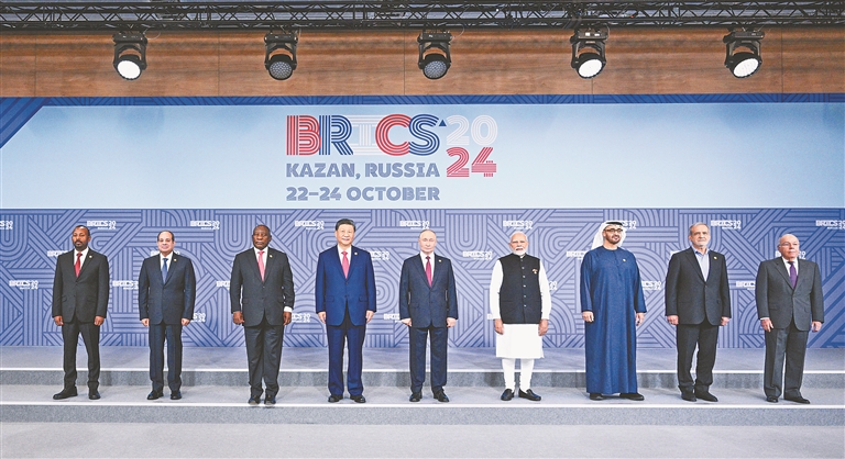 当地时间10月23日上午,金砖国家领导人第十六次会晤在喀山会展中心举行。俄罗斯总统普京主持会晤。中国国家主席习近平、巴西总统卢拉(线上)、埃及总统塞西、埃塞俄比亚总理阿比、印度总理莫迪、伊朗总统佩泽希齐扬、南非总统拉马福萨、阿联酋总统穆罕默德等出席。习近平发表重要讲话。新华社记者 谢环驰摄