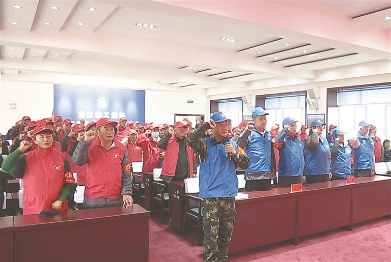 “义警”庄严宣誓。本报记者 李健摄