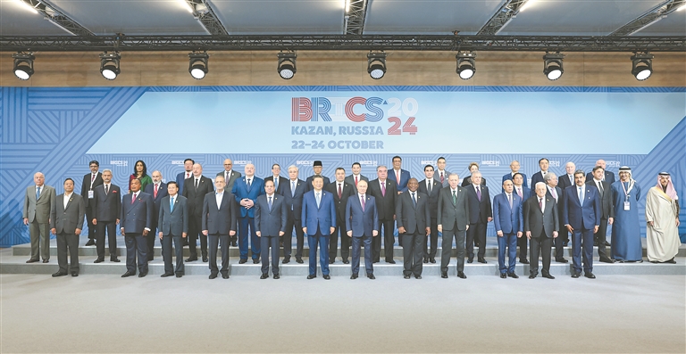 当地时间10月24日上午,国家主席习近平在喀山会展中心出席“金砖+”领导人对话会并发表题为《汇聚“全球南方”磅礴力量 共同推动构建人类命运共同体》的重要讲话。这是出席对话会的金砖国家及嘉宾国领导人或代表、国际组织负责人集体合影。 新华社记者 姚大伟摄