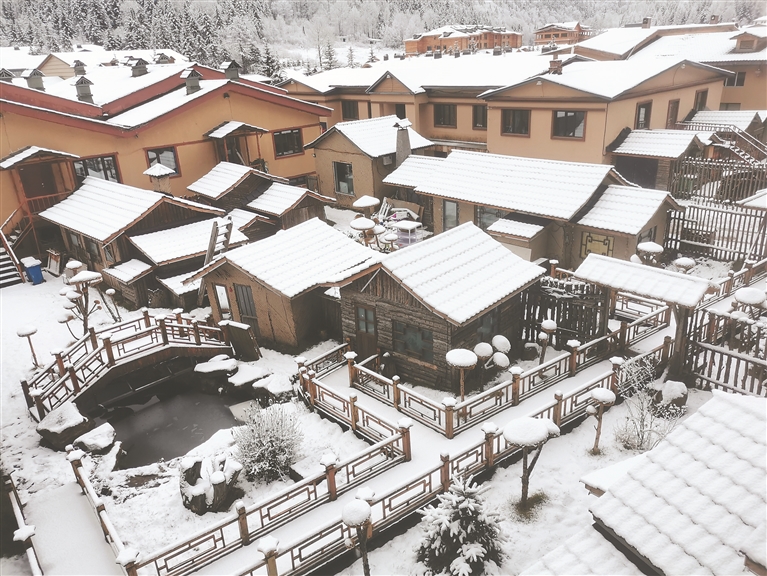 连续的降雪天气,让漠河的冰雪旅游提前拉开序幕,祖国最北端的冬季美景,持续吸引南方游客一路向北,到这里欣赏千里冰封、万里雪飘的北国风光。龙江森工雪乡景区近日迎来了今秋首场降雪。清晨俯瞰,整个雪乡景区银装素裹,房顶、栈道、树枝上的雪随物赋形,初现冰雪童话世界模样。