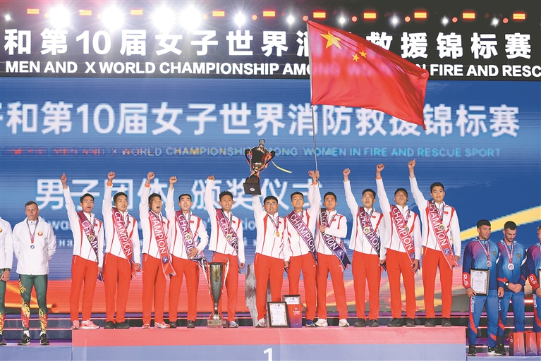 第19届男子和第10届女子世界消防救援锦标赛中,中国代表队获男子团体总冠军、男子消防4×100米项目金牌、女子手抬机动泵出水打靶项目金牌、男子手抬机动泵出水打靶银牌,创造我国参加此项赛事的历史最好成绩!