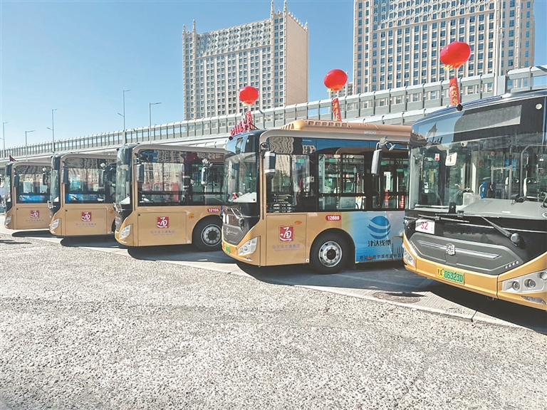 2012年,哈市成为全国首批“公交都市”示范工程创建城市,伴随着越来越多新能源公交车上道运营,哈市开始以每年600台的速度更新、新增纯电动公交车辆,街头绿色环保型公交车逐渐增多。目前,主城六区公交车数量达到6000余台,其中绿色环保车型占98%,城区主干线路实现环保车型全覆盖。