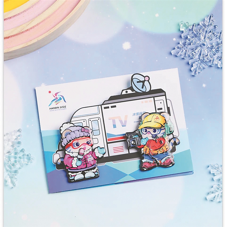 本报讯(记者刘莉 邢汉夫)记者从亚冬会组委会获悉,近日,一款创意十足、设计新颖的亚冬会特许零售商品——媒体徽章套装火热出圈。这款套装由摄像师“滨滨”和记者“妮妮”组成,不仅生动展现了采访报道亚冬会的媒体人风采,更以其独特的创意赢得体育爱好者、市民和游客的普遍好评。