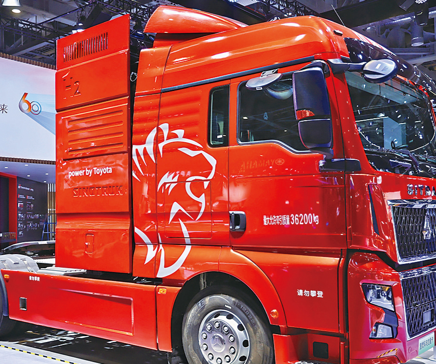 丰田在今年进博会全球首次展出的额定功率为300kw的TL Power300燃料电池系统(双系统),已率先搭载在49t燃料电池牵引车上。