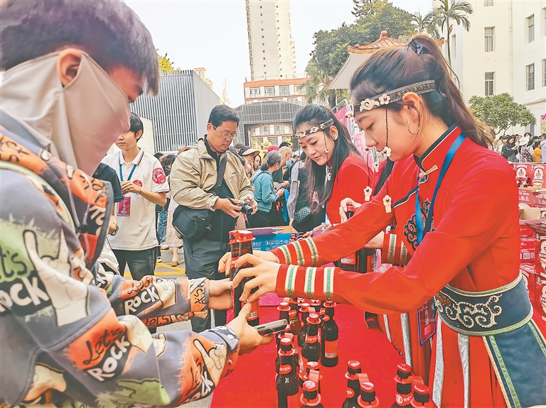 本报10日讯(记者李淅 王雪梅)10日,“绿城”南宁风和日丽,丹桂飘香。当日上午,南宁市三街两巷中华大戏院广场、广西日报社门前广场、广西体育中心喷泉广场人头攒动。在南宁市民的翘首期盼中,来自我省佳木斯市抚远市的6万瓶蔓越莓精酿啤酒在这三个点位同时派发。这场龙江蔓越莓啤酒南宁赠饮活动,再次燃动了黑龙江佳木斯抚远与广西南宁人民双向奔赴的佳话。