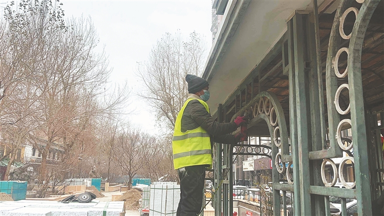 打磨理石、搅拌砂石……11日,记者在位于西十三道街的一处工程现场看到,工人们正在进行路面理石的铺装。不远处的连廊公园内,工人们在忙着进行修缮。“西十三道街的工程主要是城市家具容貌提升和园林绿化提档升级。”哈尔滨市道里区市容市政服务中心主任李冬雪告诉记者,目前,西十三道街的路面理石铺装已接近尾声,“连廊公园内我们打造了防腐木座椅,对园内的一些铁艺进行打磨后重新粉刷。”李冬雪表示,在此次提升工程中,道里区城管部门结合西十三道街既有绿地景观,打造出“四季有景、秋冬有彩”的城市绿化休憩空间,以此进一步提高中央大街辅街园林景观品质。