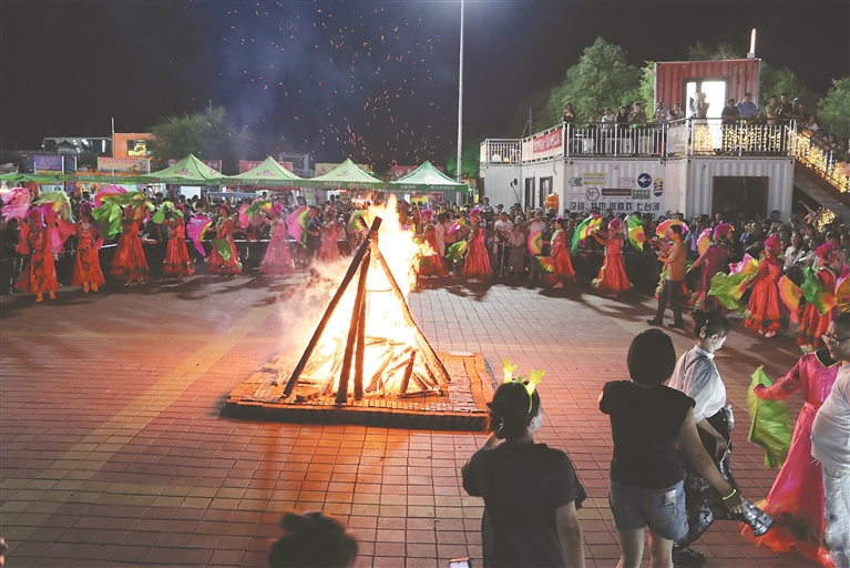 从7月29日至9月28日,万宝音乐节期间共举办了10场主题篝火晚会,晚会上的魔术展演、川剧变脸、集体蹦迪等场面给市民和游客留下了许多欢乐的记忆,线上线下100余万人次观看了篝火晚会。在七夕当天,万宝音乐创意部落更是打造了万人参加篝火晚会的盛大场面。
