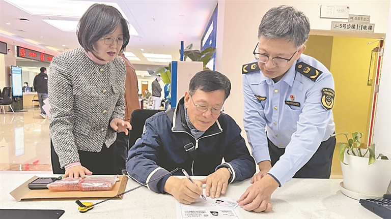 在提交材料时,金先生提出其具有新版“中华人民共和国外国人永久居留身份证”(以下简称永居证),但不知如何使用。哈尔滨市市场监管局工作人员逐一说明后,金先生当即决定使用永居证作为身份证明文件办理这次登记注册变更,没再提供公证认证纸质材料,就实现了线下实名认证、当场办结。经审查后,工作人员为金先生核发了新营业执照。