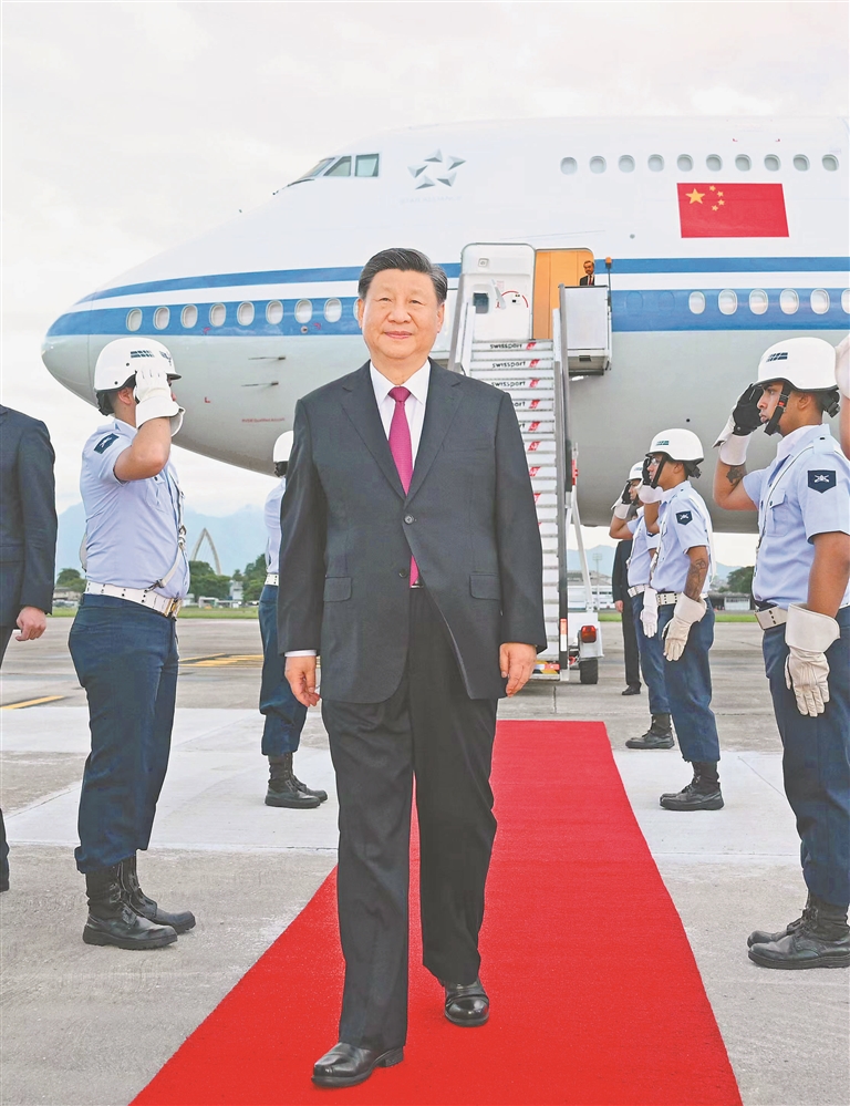 当地时间11月17日下午,国家主席习近平乘专机抵达里约热内卢,应巴西联邦共和国总统卢拉邀请,出席二十国集团领导人第十九次峰会并对巴西进行国事访问。新华社记者 李学仁摄