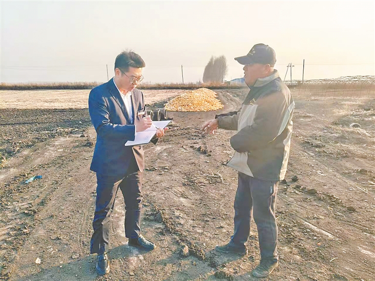 银行部门走入田间地头回访农户。
