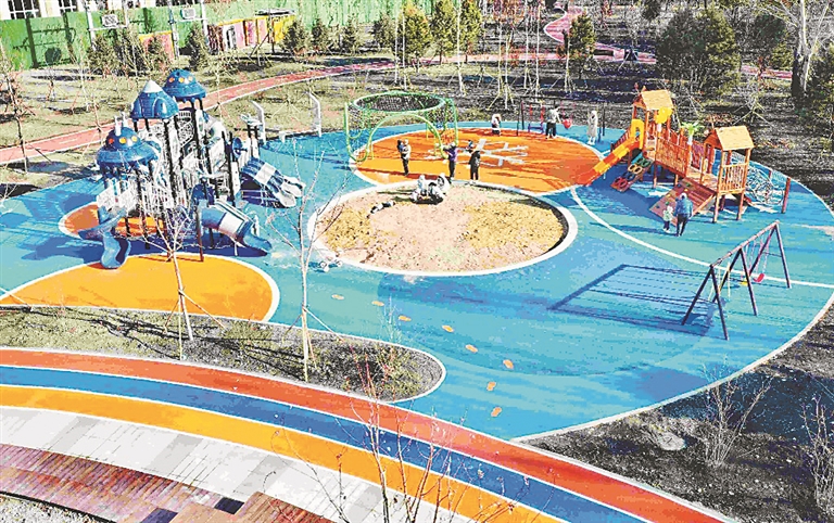 据了解,迎宾公园是近日刚完工投入使用的,面积达40000平方米,分为四季畅享区、雪人迎宾区、休闲运动区三大功能区,园内配备秋千、滑梯、绿道、座椅等市民休闲设施和儿童游乐设施,满足人们的休闲运动需求。