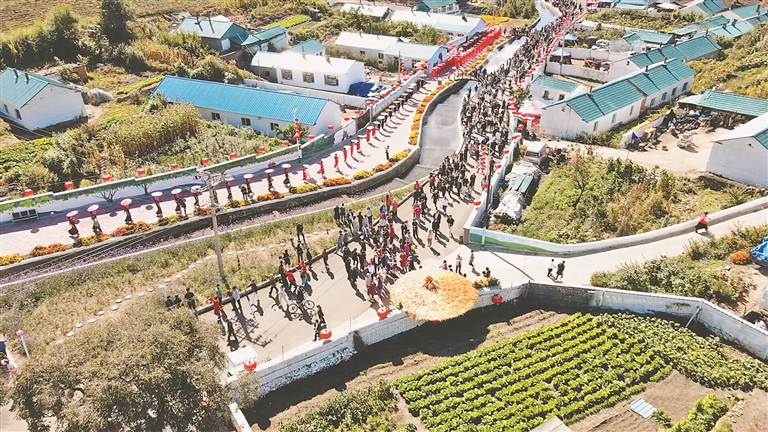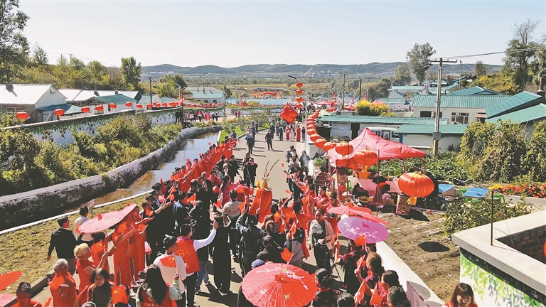 在鱼亮沟,布局了一条红色旅游线路。现在,当地依托炮楼遗址等资源,梁家村打造了3000米彩绘文化墙,开发“重走新四军路”项目,鱼亮沟成了远近闻名的红色研学之地和东北民俗展示演艺基地。小山村的文化娱乐氛围日益浓厚,还成了最新的文旅电影《一面相见》的取景地。