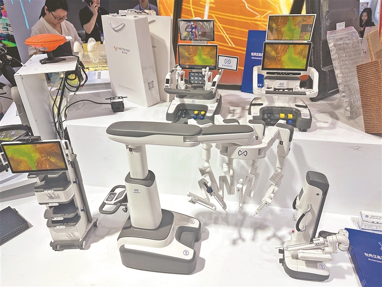 “与市场主流的四臂产品不同,我们的产品采用‘4+1’模式,可以胜任更多复杂的手术场景。此外,双控制台的设计不仅可用于多学科联合会诊,还可以实现远程医疗。”公司品牌专员林燕霖介绍,手术机器人可以使各类外科手术更精准、更便捷,具有创伤小、出血少、恢复快等特点。