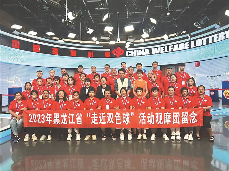 黑龙江省福彩“走近双色球”观摩团现场观摩双色球开奖。