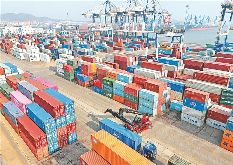 这是12月10日拍摄的山东港口烟台港国际集装箱码头(无人机照片)。