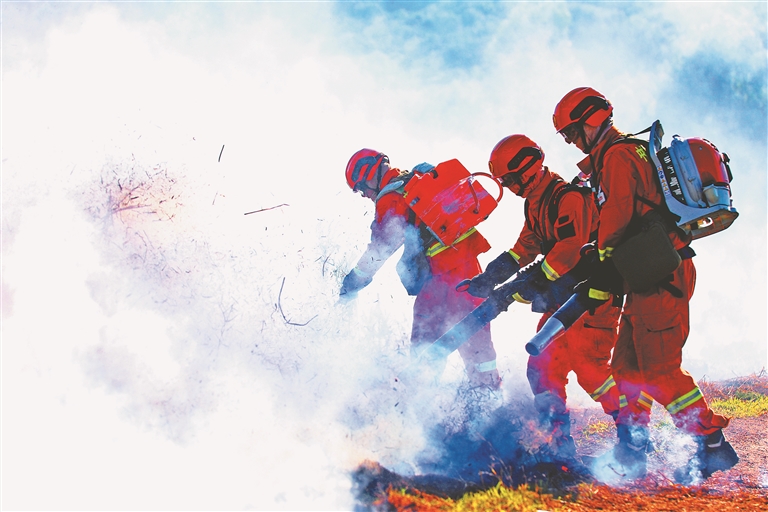 谁能想到,这个打火“急先锋”,只是一名刚入职3年的“新兵”。刚当上森防队员的赵伟鹏,一有空就扑在装备库和训练场,学习火场侦察、现场扑救等专业知识,练习灭火机、油锯切割等设备操作。