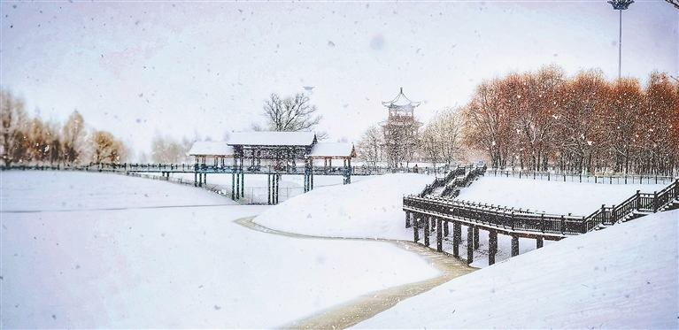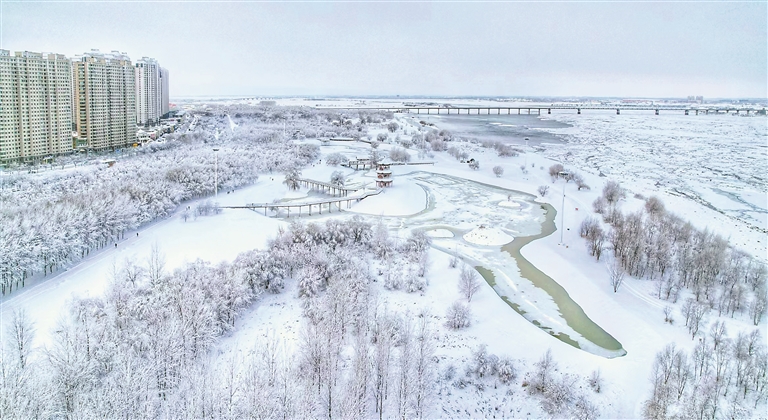 雪花纷纷落下,大地银装素裹。雾凇漫卷,树挂如诗如画,宛如冰雪世界的精灵,让人仿佛置身于童话世界中的仙境。