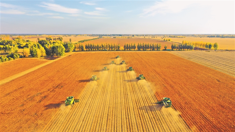 在良田方面,累计建成高标准农田超过1.1亿亩,全国规模最大;在良种方面,筛选推荐适合全省不同积温带种植的主要作物主导品种135个,主要农作物良种基本实现全覆盖;在良法方面,集成推广优质高产高效技术模式,推广大垄密植栽培技术5100余万亩、水肥一体化技术212万亩,分别比上年增加1600多万亩和160多万亩。同时,适时开展“一喷多促”作业1.06亿亩;在良机方面,出台优机优补政策,加快推进老旧农机更新换代,今年全省新增100马力以上拖拉机、高性能播种机等先进农机具超1.4万台(套),进一步提升了作业质量;在良制方面,创新农业经营方式,全省农村集体土地实现适度规模经营面积1.1亿亩。充分发挥北大荒农垦集团示范引领作用,深入推进垦地合作,通过农垦带动地方,有力地促进了粮食大面积均衡增产。在全过程防灾减灾方面,提前制定预案,细化关键措施,充分发挥全省1万个病虫监测点和村级植保员作用,开展重大病虫疫情统防统治,特别是推广大豆种子包衣面积6500万亩,最大限度地减少了灾害损失。