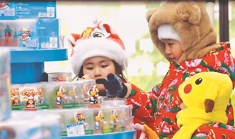 图为孩子们对亚冬会特许商品爱不释手。褚广义摄