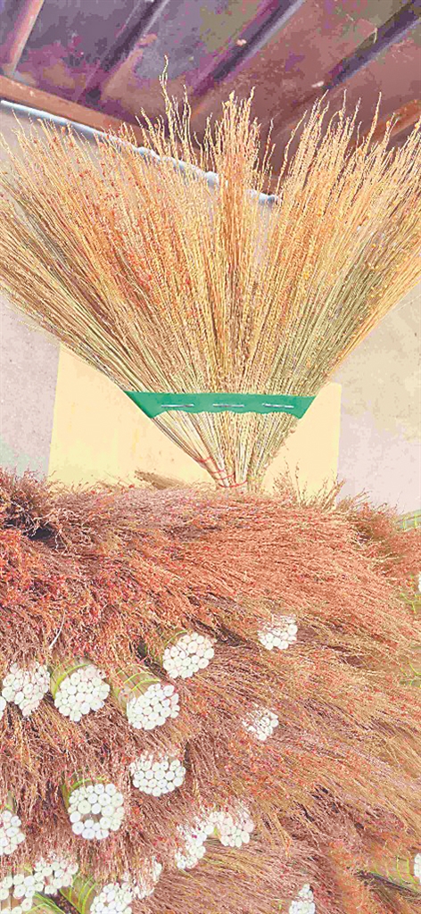 姜艳喜告诉记者,帚用高粱是旱作农业增收增效的特色农作物,在农业结构调整中有很大的发展优势:首先它的抗旱性强,适合瘠薄及干旱地区种植,是农民增收保收的理想作物。其次,帚用高粱加工利用的部位主要是糜子,不需要籽粒达到成熟期便可以使用,逢灾年补种、改种都可以获得一定收成,是较为理想的救灾作物。帚用高粱对土壤条件要求不高,耐盐碱、耐瘠薄,适宜范围广,种植帚用高粱、加工笤帚制品,对旱作农业结构调整,解决农民就业问题、增加农民收入具有重要意义。