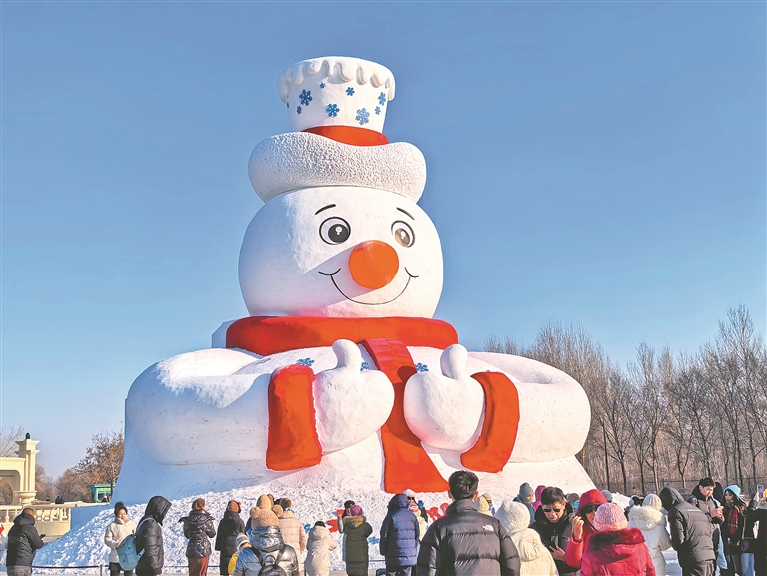 “哇,这个大雪人太圆润、太可爱啦!你看它竖起两个大拇指,好像在说‘棒棒哒’。”在太阳岛雪博会园区入口处,江苏游客徐佳音兴奋地跟同伴交流。这里聚集了很多市民和游客打卡大雪人。随着“迎客大使”《雪人先生》雪塑的落成以及爆火,第三十七届太阳岛雪博会还未开园,就已成为焦点。