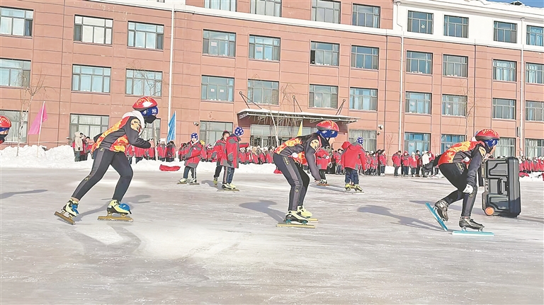 汤原县第一小学开展冰上运动。 图片由汤原县委宣传部提供