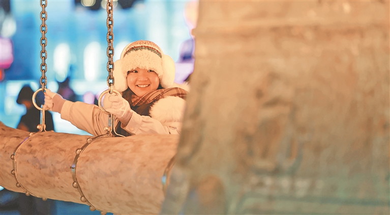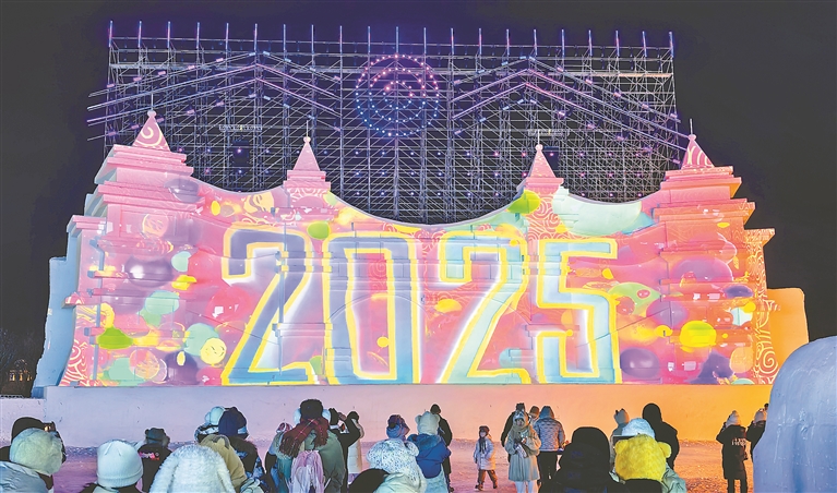 19时,在冰雪秀场附近,一场雪山光影秀为游客带来震撼的视觉体验。在精心雕琢的雪墙墙面上,光影如魔术般交织变幻。从迎接新春的温馨场景,到冰雪运动的激情瞬间,再到街舞文化的热烈脉动,每一帧画面都令人叹为观止。“这真是一场无与伦比的视觉奇观,迎新年的氛围扑面而来。”北京游客孙磊兴奋地说。