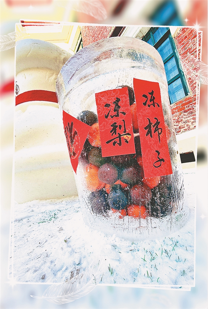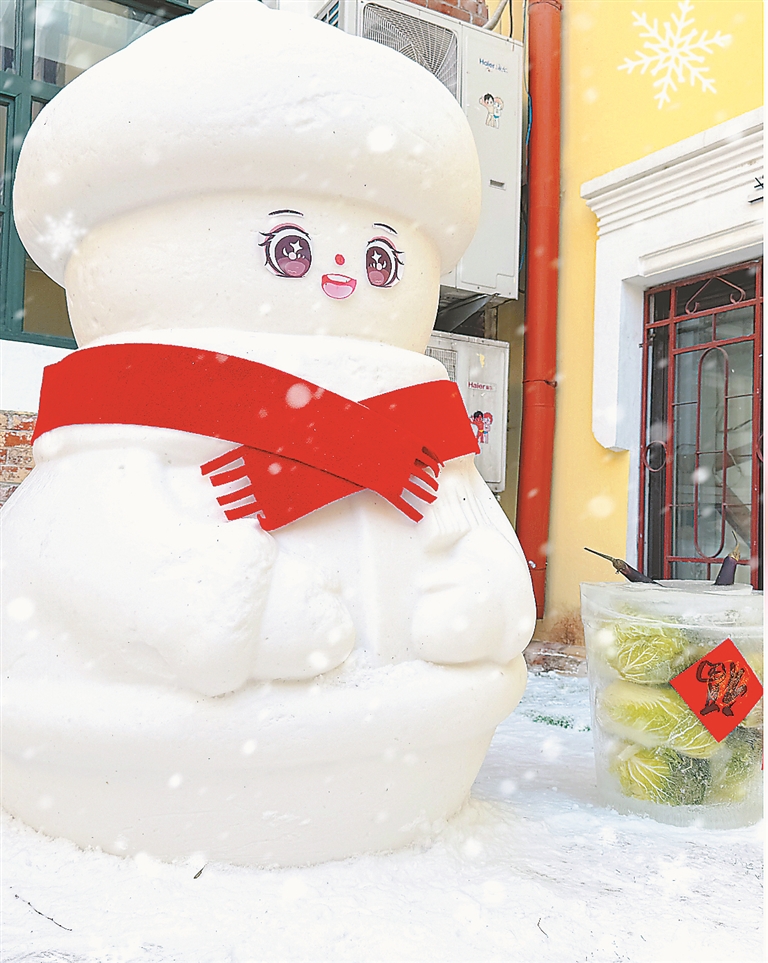 图②③④:省博物馆馆区以铜坐龙为原型设计的卡通IP吉祥物“龙龙”和萌萌的大雪人,以及冻梨冻柿子。本报记者 董云平摄