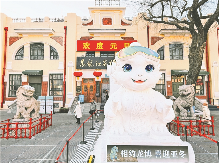 省博物馆馆区以黑龙江省博物馆镇馆之宝铜坐龙为原型设计的卡通IP吉祥物“龙龙”,以雪雕形式亮相博物馆门前,一经推出便吸引广大游客打卡拍照。带有东北特色的天然“大冰箱”,储存冻柿子、冻梨、大鲤鱼等冻货,让浓郁的生活气息扑面而来,更让广大游客感受哈尔滨不一样的冬天。