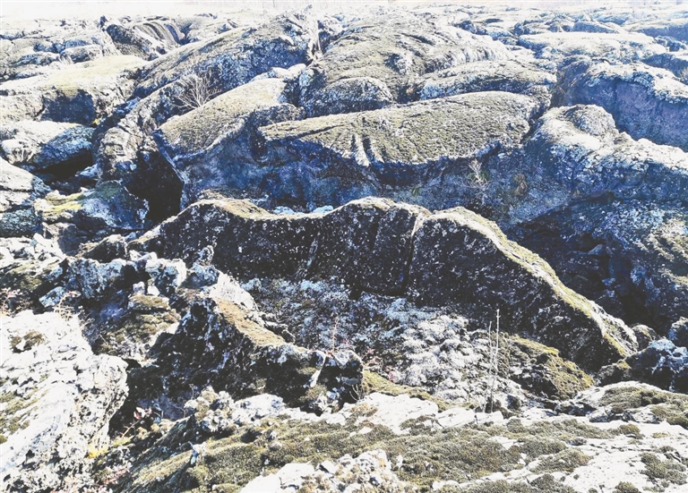 这里才是真正的自然奇观,是一部记录在大地上的史书,是黑色熔岩绘制成的壮丽画卷。那些波浪起伏的岩石,层层叠叠,气势磅礴,就像浩瀚无垠的黑色大海,在浩浩绵延中肆意奔涌,呼啸而过,震撼着这里的每一寸土地。尤其是在冬季,火山岩石的黑色与雪的洁白形成强烈的对比,在白雪的点缀下显得更加壮观和神秘,自带超脱于尘世的神秘感。