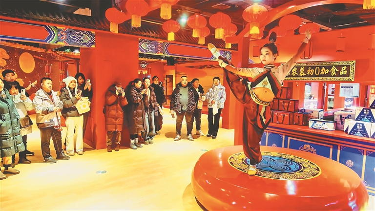 游客欣赏精彩演出。本报记者 刘艳摄