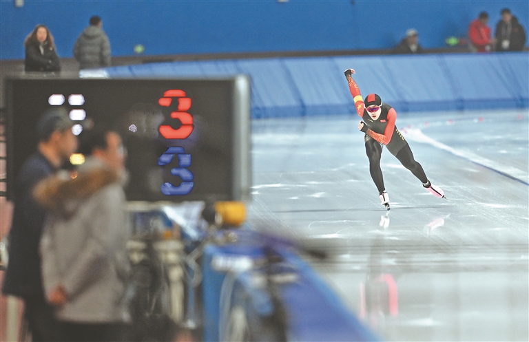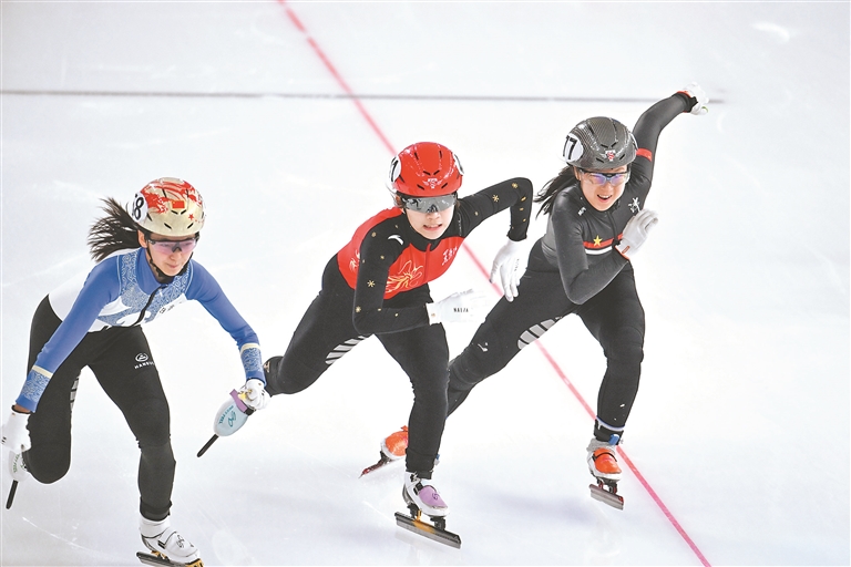 省冰上训练中心速滑馆进行的亚冬会短道速滑测试赛。