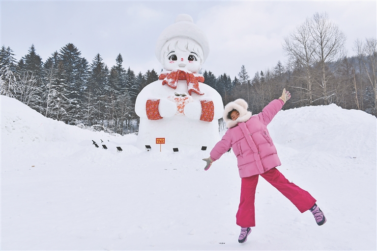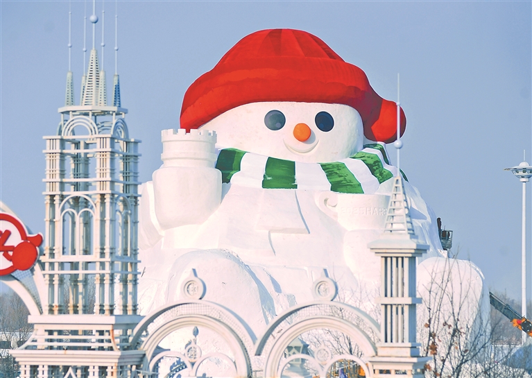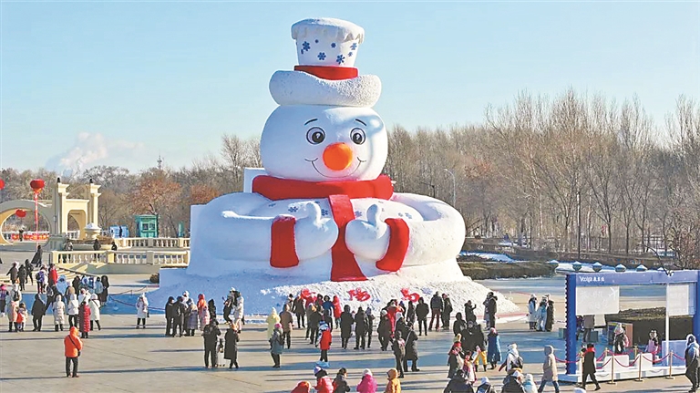哈尔滨市群力音乐公园“网红”大雪人。 本报记者 张澍摄