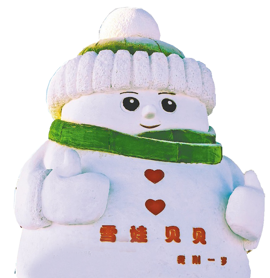 绥化市明水县神泉广场上的“雪娃贝贝”。高伟摄