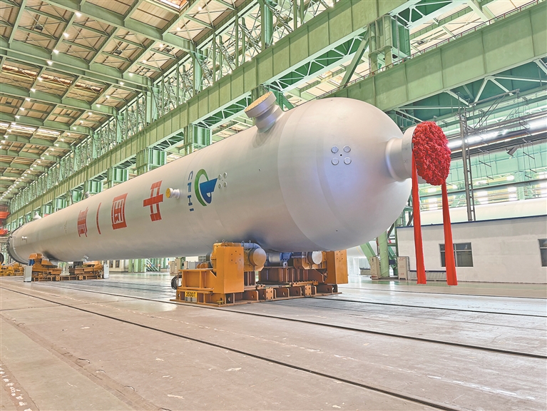 2024年4月29日,3台直径5.6米、长度70余米、单台重量达3037吨的世界最大3000吨级浆态床锻焊加氢反应器在一重集团大连核电石化有限公司正式交付,标志着我国重型石化技术装备制造能力稳步站上3000吨台阶,具备了同类装备批量化、专业化、流程化生产能力,成功刷新世界极限制造纪录,进一步彰显了中国一重作为“大国重器”的技术创新能力和超级工程创造实力。