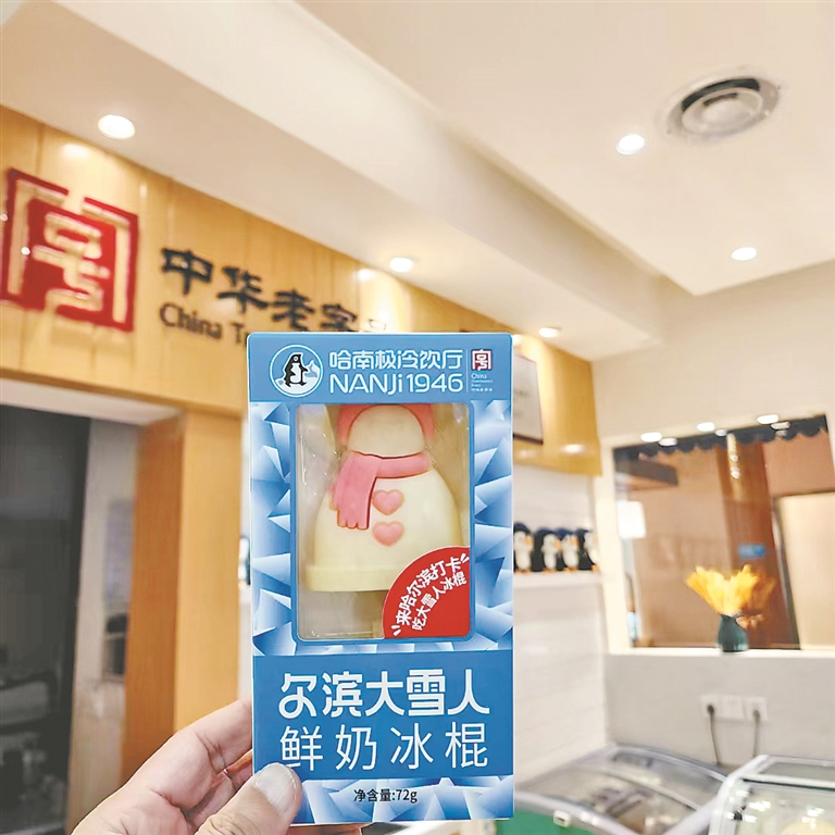 “粉色的帽子围脖、憨态可掬的表情、圆滚滚的大肚子……”近日,南极冷饮厅新推出的一款“尔滨大雪人”鲜奶冰棍,引得消费者争相尝鲜。