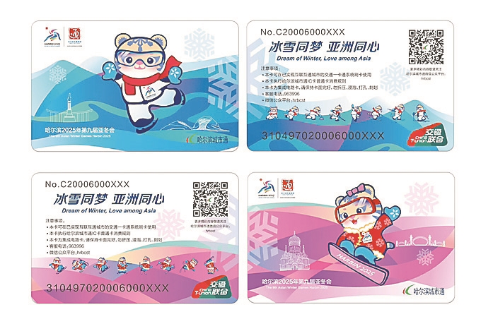 此次发行的限量版公交卡经过官方授权,以亚冬会的核心视觉元素为主题,将本届亚冬会吉祥物“滨滨”“妮妮”充满动感的冰雪运动图案与哈尔滨的特色地标建筑巧妙融合,不仅展现出哈尔滨的魅力与活力,还传递着亚冬会的激情与梦想。