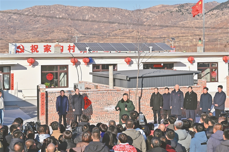 1月22日至24日,中共中央总书记、国家主席、中央军委主席习近平冒着严寒来到辽宁,看望慰问基层干部群众。这是22日下午,习近平在葫芦岛市绥中县明水满族乡祝家沟村考察时,同村民们亲切交流,向大家致以诚挚慰问和新春祝福。新华社记者 翟健岚摄