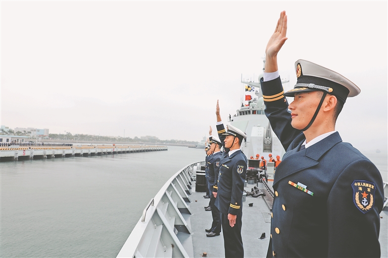 中国海军第46批护航编队完成亚丁湾、索马里海域护航等任务后,24日返回广东湛江某军港。这次任务历时339昼夜,编队累计航行16万余海里,航迹跨越亚非欧3大洲。
