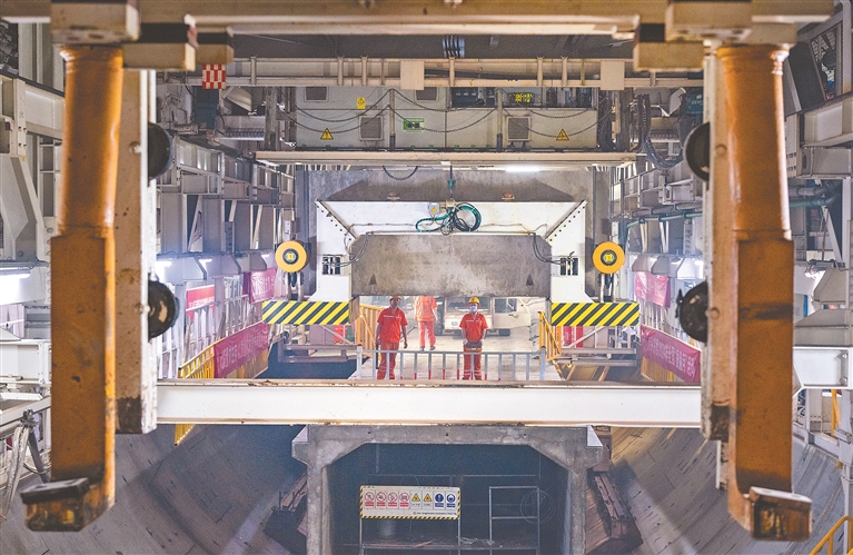 26日,随着“皖江复兴号”盾构机顺利抵达接收井,由中铁十四局承建的芜湖龙湾长江隧道左线贯通,标志着“八百里皖江第一隧”实现全线贯通。隧道位于长江芜湖段大拐弯处,设计为双线双向六车道的城市快速路,全长5965米,设计时速80公里。