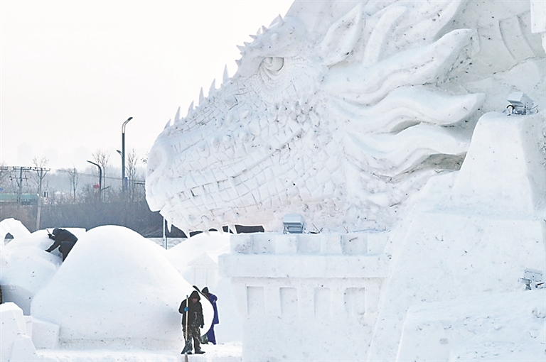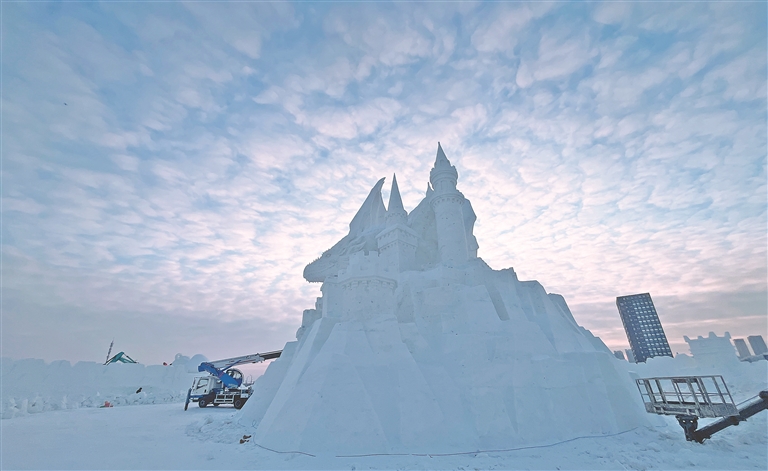 近日,哈尔滨市冰雪季持续火爆,雪雕师在松花江畔打造一座梦幻城堡。巧夺天工的雪雕作品通过视频展示出去,被网友赞为雪雕制作的天花板。