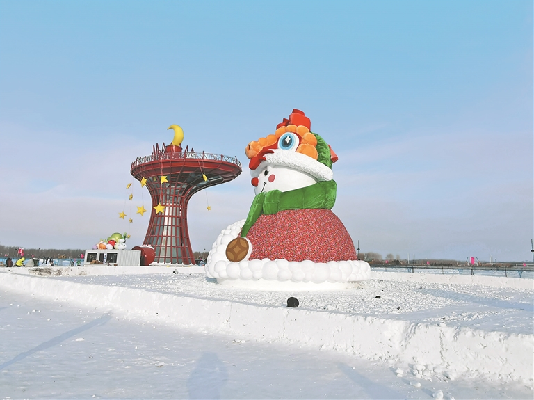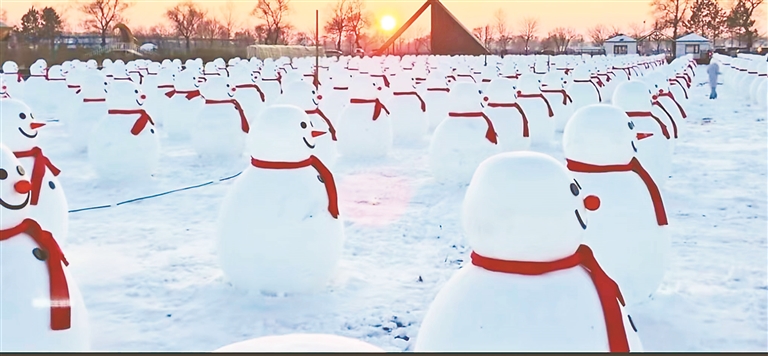 下了观光塔,小林带我们来到还在施工的冰上主题公园现场。“除了你们刚才去过的那个雪娃娃打卡地,我们还建造了‘欢闫’‘迎家’两个雪人吉祥物,提升游雪感受;把亚冬会吉祥物‘滨滨’和‘妮妮’也请了进来,再加上这八百个微型版的雪人组成的‘雪人军团’,可以让游客参与其中,周边配套雪屋铁锅炖等餐饮业态和雪屋服务中心、雪屋咖啡馆等补给站,温暖游客旅程,促进消费转化,提升游玩体验,实现增收。”