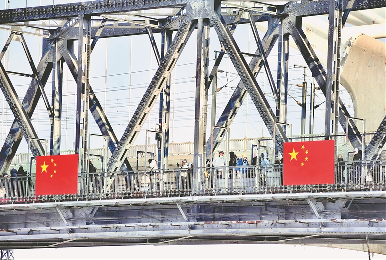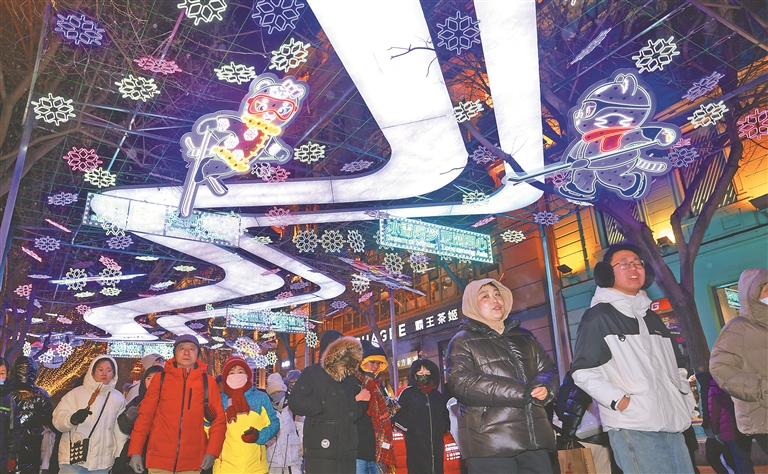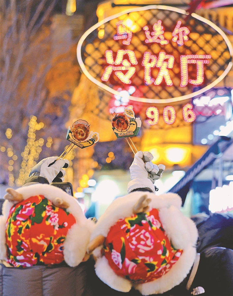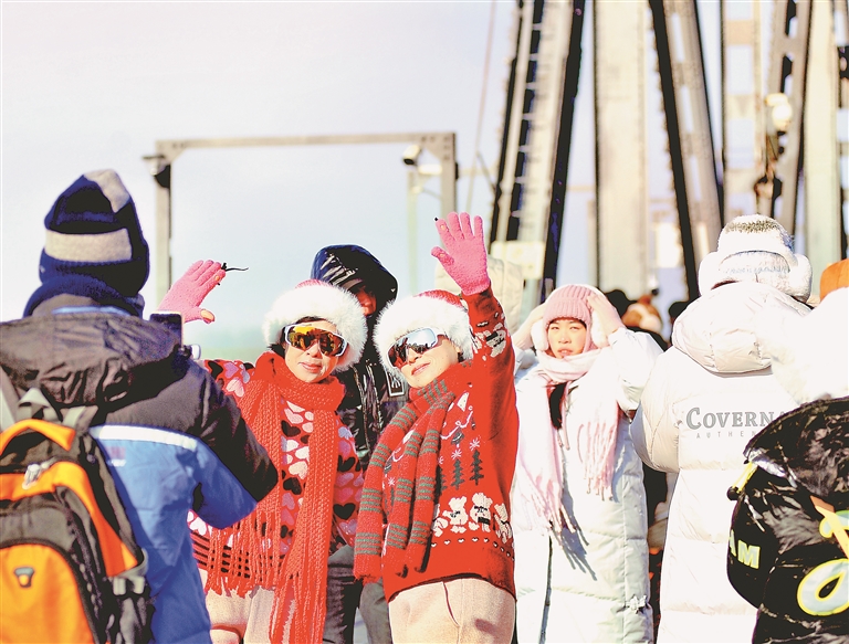 1日,农历正月初四。松花江滨洲铁路桥上,许多南方游客在打卡拍照。桥上悬挂了许多五星红旗,喜庆气氛浓厚。中央大街,人流熙熙攘攘,老街灯火璀璨,游客在这里观赏花灯、品尝马迭尔冰棍、弹奏冰钢琴。哈工大中心也吸引了许多游客前来参观学习……